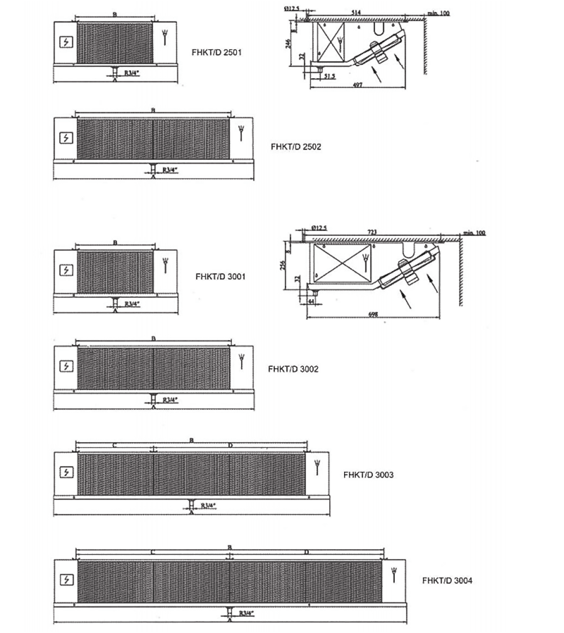 کویل های کارآمد بالا از لوله مس با کیفیت بالا ф12mm (FHKT 250) ، ф15 میلی متر (FHKT 300) و باله های آلومینیومی با مشخصات ویژه ساخته شده اند.