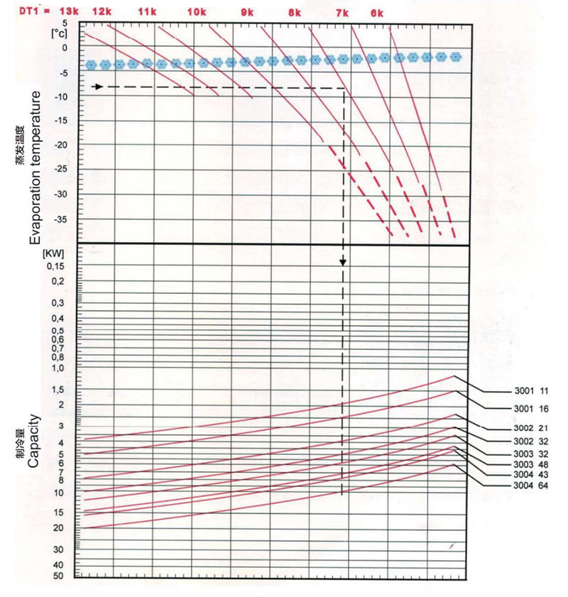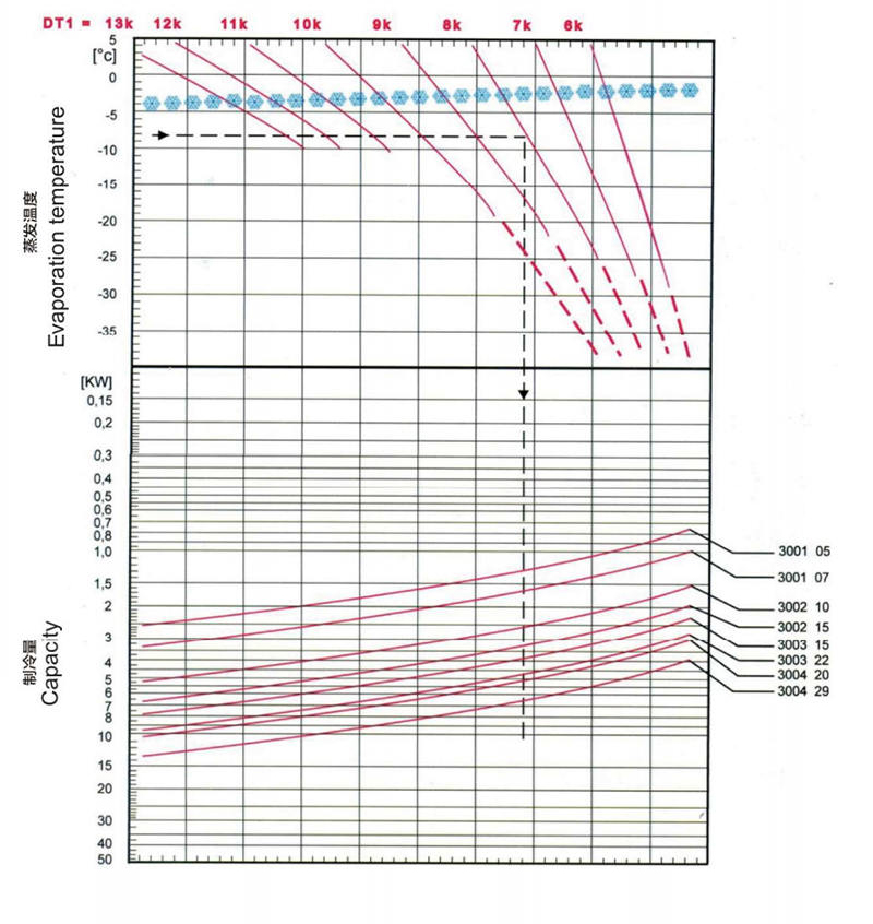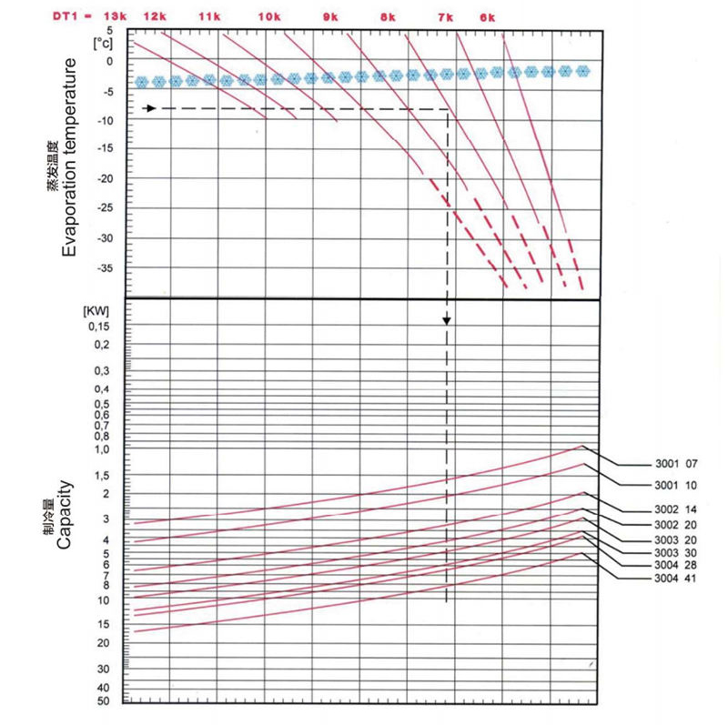 | مدل | ظرفیت R404A/R507A (KW) | سطح (m²) | حجم لوله (DM³) | ابعاد (میلی متر) | N.W. (کیلوگرم) | اتصال (∮mm) | |||||